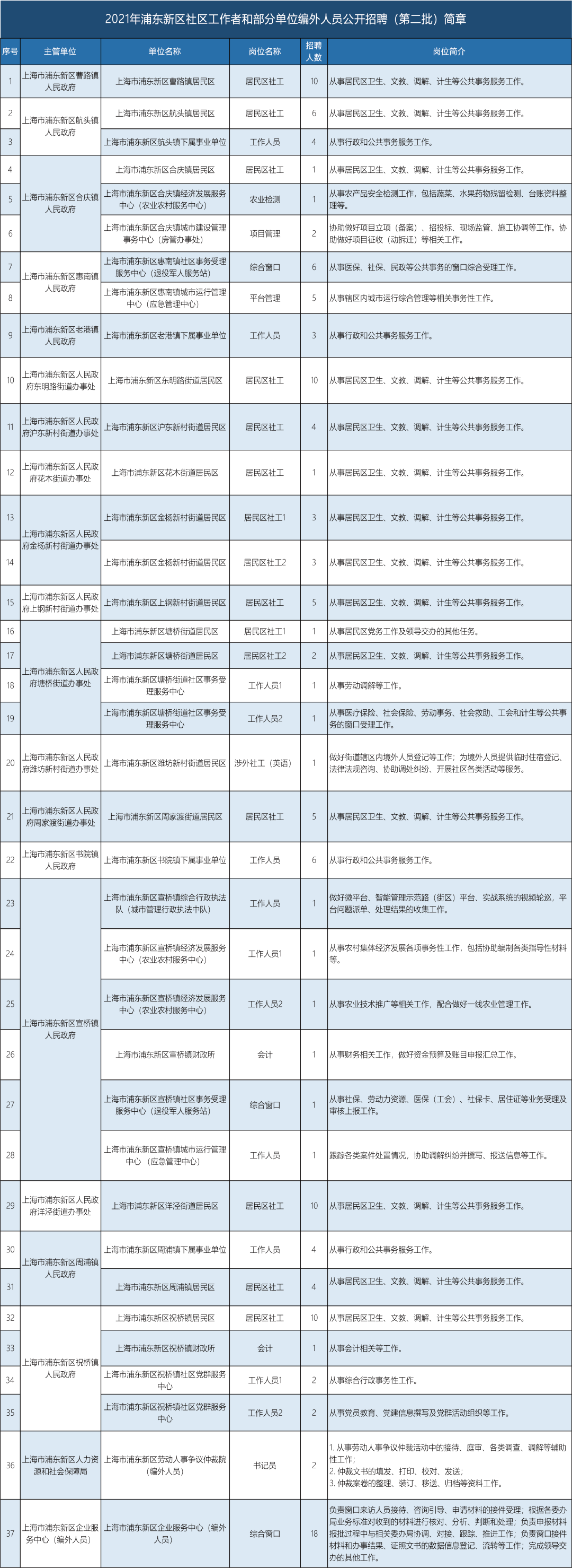 浦东第二批社区工作者和部分单位编外人员公开招聘啦!